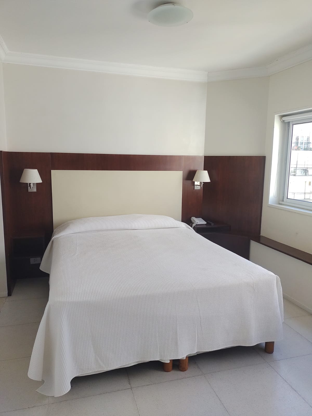 Es un amplio departamento de 130 metros ubicado al frente de la avda. Callao. Tiene tres dormitorios, tres baños completos y una gran cocina con dependencias de servicio. El living es un comodo espacio con salida al balcon donde pueden disfrutarse las vistas de la ciudad. El baño principal cuenta con bañadera y ducha y el resto de los baños solo ducha. El edificio es de gran categoría y muy seguro, ya que tiene vigilancia permanente. Todos los espacios tienen aire acondicionado frio/calor. Las camas son nuevas y de gran calidad. Hay ademas calefacción central como asi tambien agua caliente. El equipamiento de la cocina es completo y la vajilla tambien. Los dos cuartos principales tienen Television con un completo servicio de cable (Direct TV) e internet. El servicio de internet es por fibra optica con muy buena llegada a todos los ambientes. Hay ademas una 4 habitacion al lado de la cocina equipada con articulos de limpieza, tabla de planchar y aspiradora.