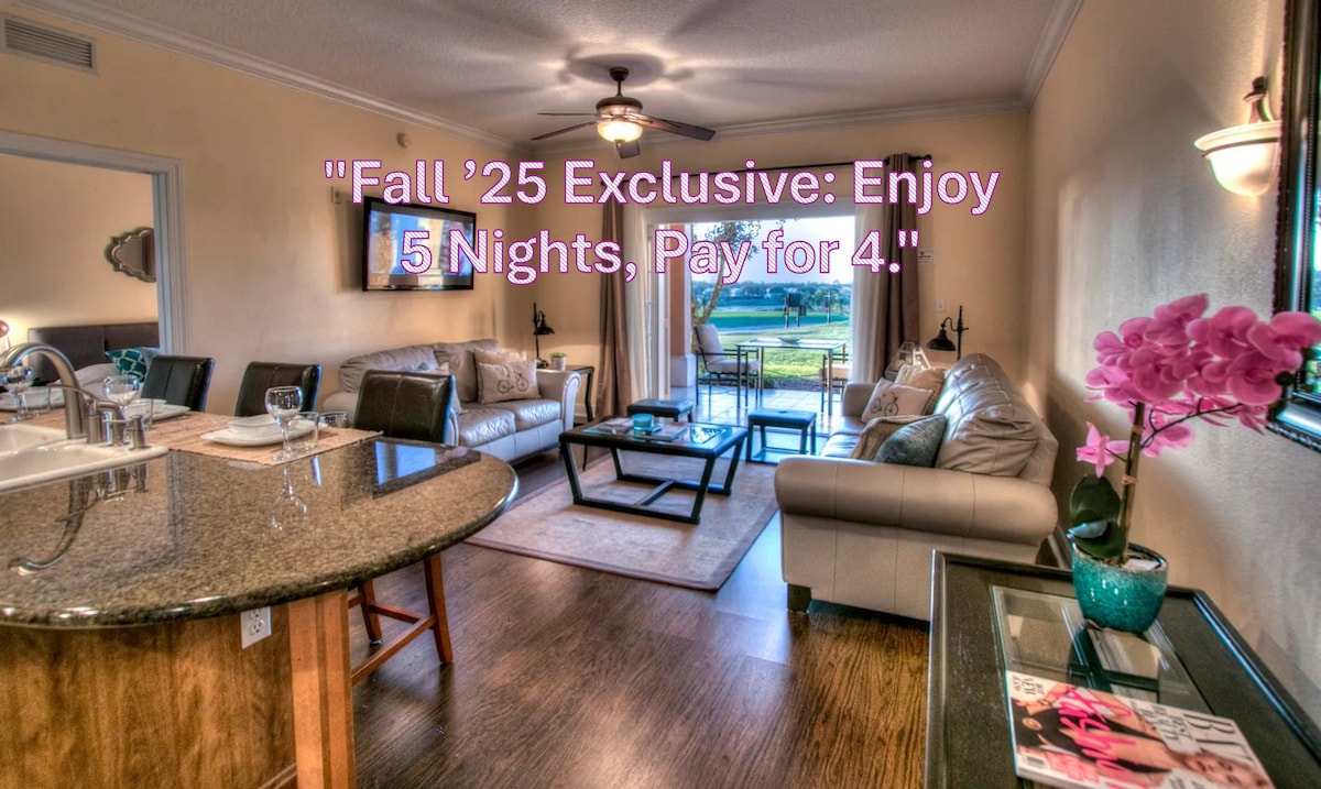 Spacious one bedroom apartment for up to 4 guests, Centrally located inside Reunion Golf Resort close to parks Disney, restaurants major attractions, inside one of the best orlando resorts, golf view, gym, heated pool jacuzzi, free parking, walking distance from restaurants and Starbucks. 15 Min from Disney 30 Min to airport 25 Min to Orlando’s outlets No smoking or vaping allowed ($350 smoke or vaping fee)