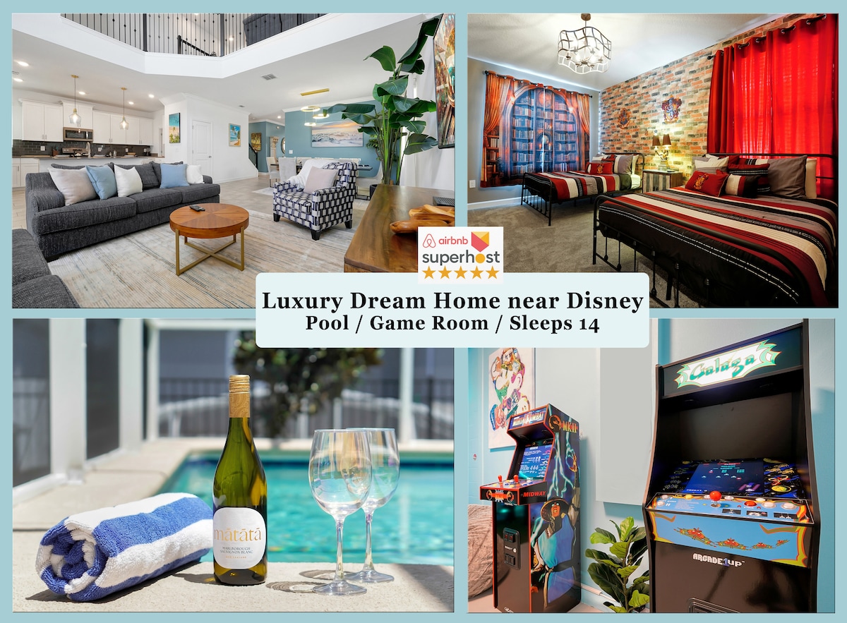 迪士尼主题房源,配备游戏室和私人热水浴缸!
