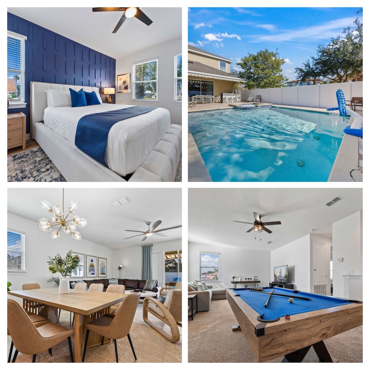 Escape to our lovely vacation villa, nestled in the vibrant heart of Orlando's premier golfing destination. Just a 7-mile drive from Disney attractions and 30 minutes from Orlando International Airport. Discover the awe-inspiring Reunion Resort, offering an array of delights. Indulge in delectable dining experiences, take a dip in sparkling pools, savor refreshing drinks at poolside bars and grill. Embark on an extraordinary getaway that exceeds all expectations. Book your stay with us today!
