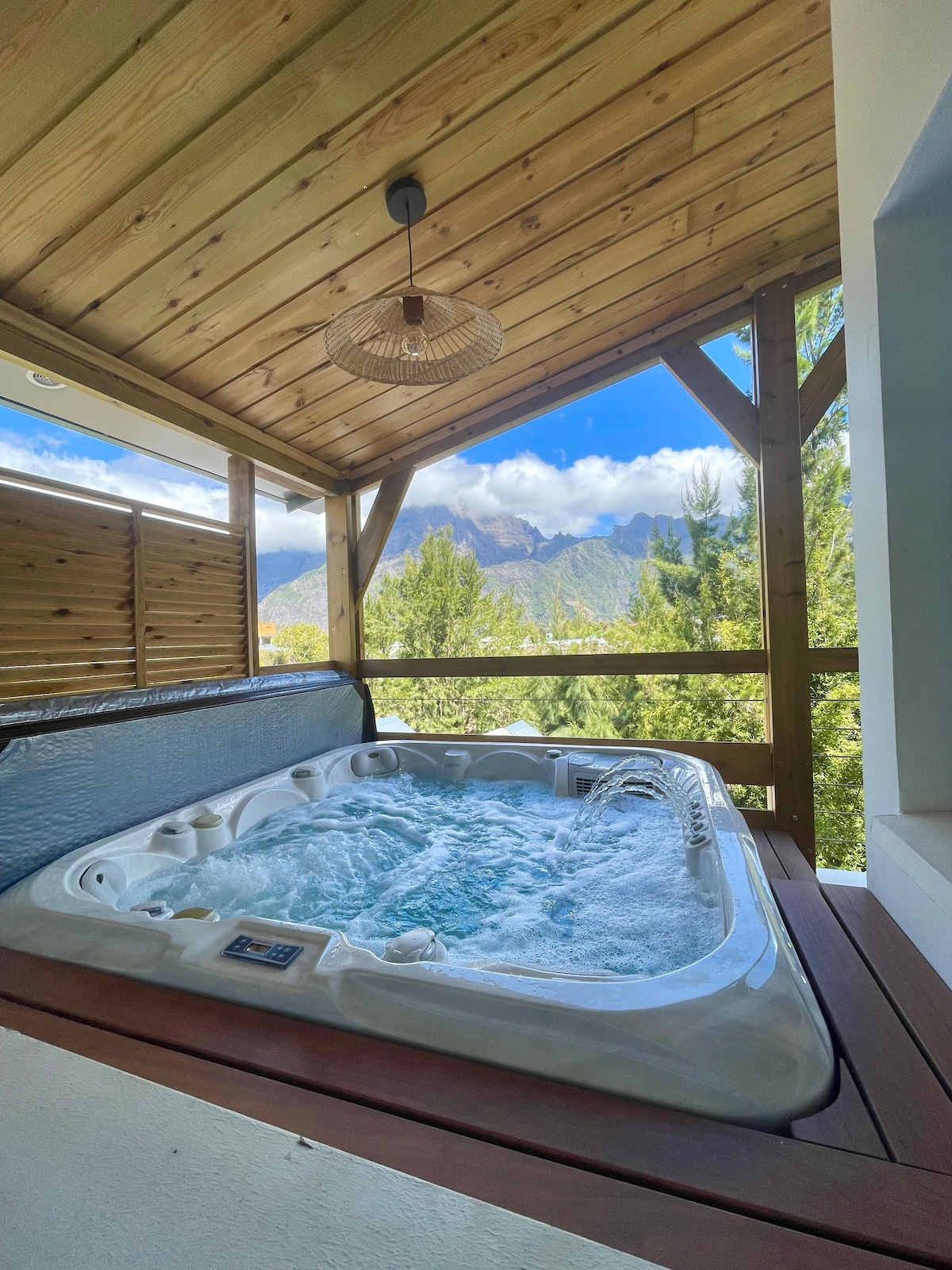 Laissez-vous séduire par L’Écho des Remparts, cocon moderne et chaleureux pour 4 personnes au cœur de Cilaos. Profitez d’une vue exceptionnelle sur le Piton des Neiges, le Taïbit, les Trois Salazes et le Rempart des Bénare. Chaque lever et coucher de soleil y devient un spectacle inoubliable et magique. Après vos randonnées, savourez un moment de détente absolue dans le jacuzzi. À deux pas du centre-ville, vivez une parenthèse hors du temps entre nature, confort et sérénité profonde.