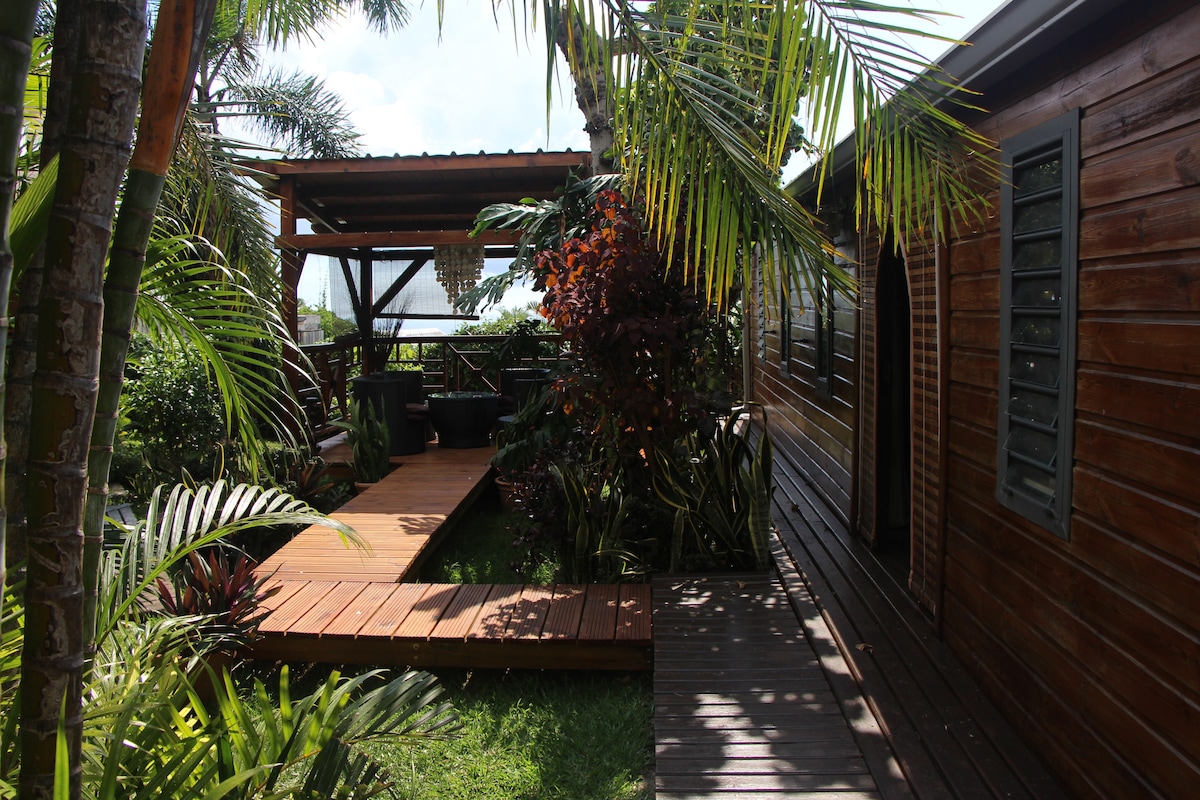 Profitez d'un séjour agréable à la Case du Front de mer de Saint-Paul. Située à proximité du centre-ville et à 10 min des plages, en bordure du parc naturel de l'étang Saint-Paul. Bungalow neuf entièrement équipé : plaque de cuisson, machine à laver, barbecue, climatisation, petit canapé convertible, grande terrasse, entrée privée, très confortable à vivre.