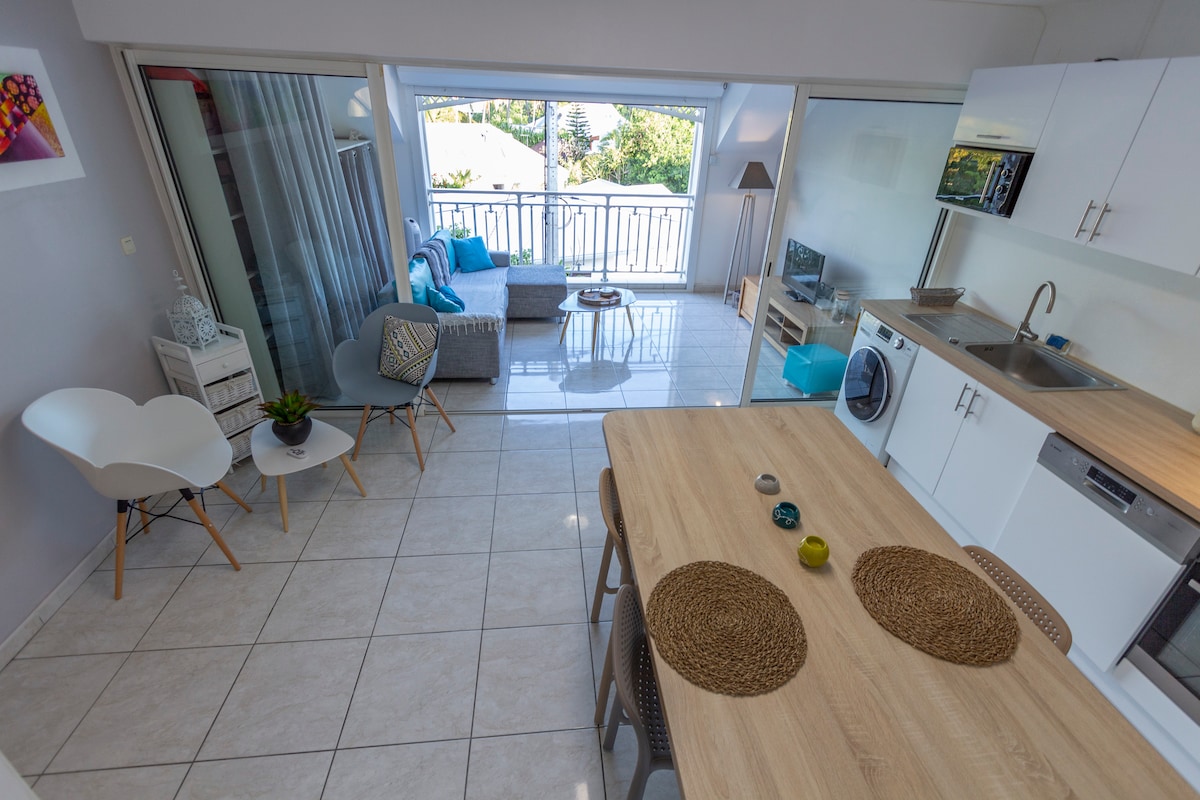 appartement entier de 50 m2 : très AGRÉABLE T2 MODERNE ET COSY pour 2 à 4 personnes (idéal pour une famille ou 3 adultes) ,varangue couverte …aux Portes du Lagon de St Pierre ... situation idéale PLAGE/MER /VILLE /MONTAGNE /VISITES.... A coté du fameux MARCHÉ du samedi matin de ST Pierre , de la plage, des commerces, du port, de la vie nocturne ...piste cyclable, Beach-volley, kitesurf... , facile d’ accès pour aller dans le Sud Sauvage et au Volcan TOUT CONFORT/ WIFI