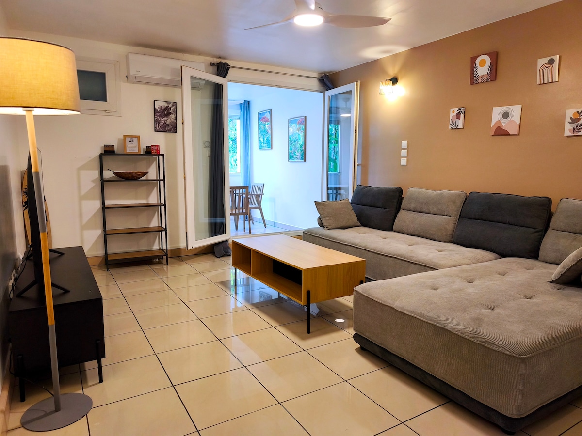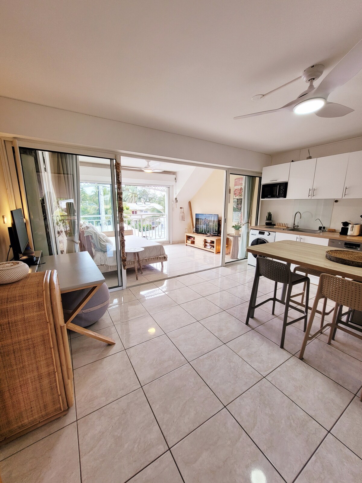 Rénovation 2026 - Appartement 2 pièces de 44 m² + terrasse, en open space classé 3*** avec grande cuisine, salon tv, douche italienne. Le Letchi à Boucan Canot vous accueille pour court ou long séjour au calme, vue sur la végétation tropicale, à 500 m de l'une des plus belles plages de l'île, idéal 4 adultes ou couples avec 1 ou 2 enfants. Parking sécurisé. Plage surveillée et sécurisée et grande piscine naturelle d'eau de mer. Situation privilégiée pour visiter l'île. Lit bébé nous consulter