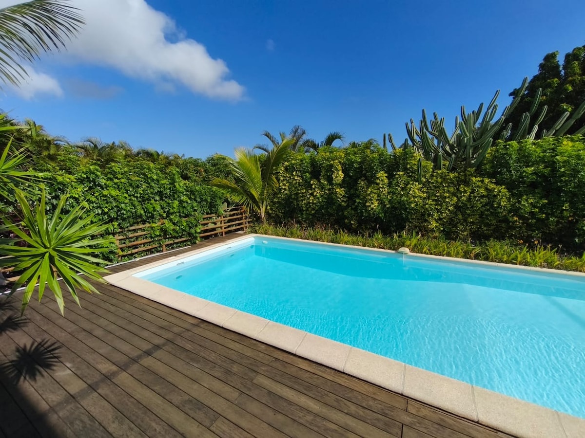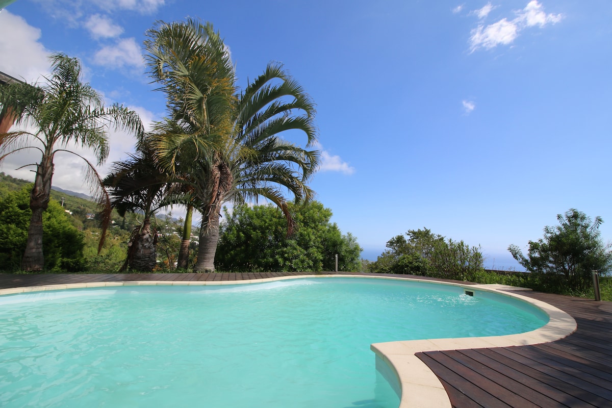 Logement entier sans vis a vis , calme et spacieux, situé dans les hauteurs de Saint Joseph (10 min de St Joseph centre 15 minutes de Grand ANSE ), idéal pour une halte de fraîcheur en famille, en couple ou entre amis. Le logement donne directement sur la piscine et un grand jardin arboré, il est composé d'une cuisine aménagée, d'une douche italienne, d'un lit double et d'un canapé convertible. La piscine est privative , grande ( 9/4 ) profondeur 1.20 a 1.80. commerces a proximité