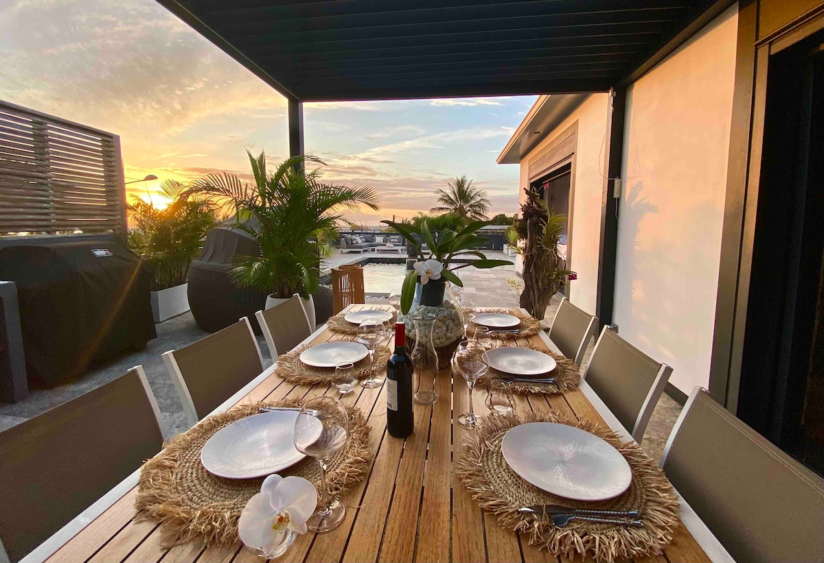 Bienvenue à la Villa Louane (100m2), perchée sur les hauteurs de Saint-Pierre, 135m d'altitude, idéale pour un séjour détente avec une vue à couper le souffle sur la mer et la ville de Saint-Pierre. Cette location allie tranquillité et panorama exceptionnel. ● Capacité jusqu'à 5 personnes ● Piscine à débordement, parfaite pour se rafraîchir en admirant le coucher du soleil. Une douche extérieure ● Une terrasse en caillebotis, 50m2 environ, avec un kiosque pour prendre un apéro et admirer la vue