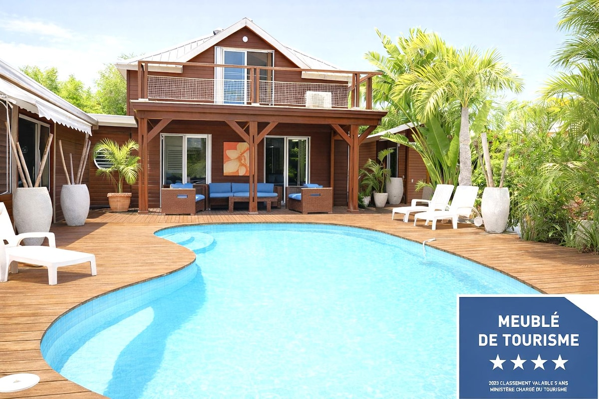 Belle Villa classée meublée 4* Belle piscine au sel 10x4 m, chauffée à 28° en hiver austral. Plage de Grand Fond à 100 m J'accueille avec plaisir des vacanciers responsables et respectueux . Pas plus de 3 enfants de moins de 10ans 30€/pers au delà de 6 et jusqu'à 8 voyageurs séjournant dans la villa Pas de nuisance sonore ni de comportement inapproprié svp Merci de consulter mon règlement intérieur avant de réserver car les invitations sont réglementées afin de préserver la sérénité du lieu.