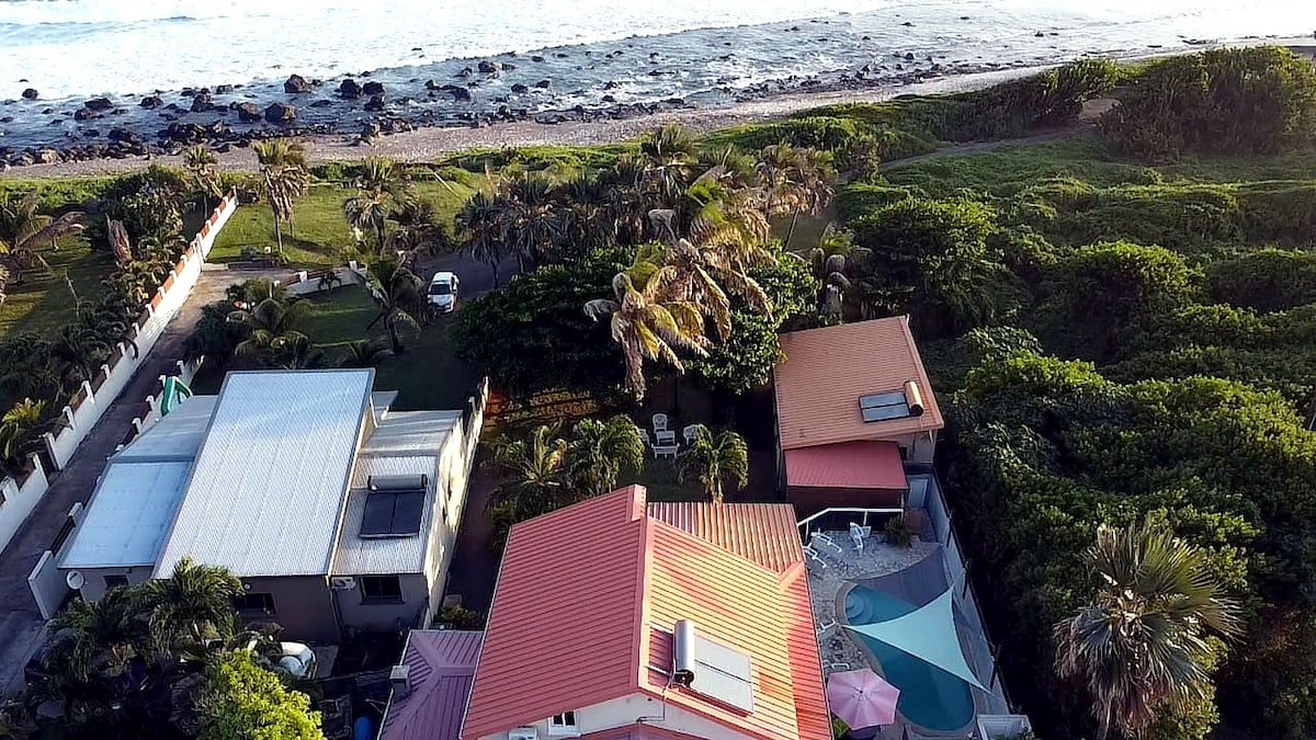 Nichée sur la falaise, l'une des rares villa créole de Manapany vous offre une vue à 180° sur l’horizon. Vous profiterez d’un séjour reposant dans un spacieux appartement T2 situé à l’étage. La piscine est accessible le jour. Parfait pour un moment de détente après une randonnée. Pailles-en-queue, geckos endémiques et baleines (en hiver austral) vous rendront visite. Laissez vous bercer par le bruit des vagues dans un véritable écrin de verdure au cœur de l'océan Indien. La béatitude assurée !