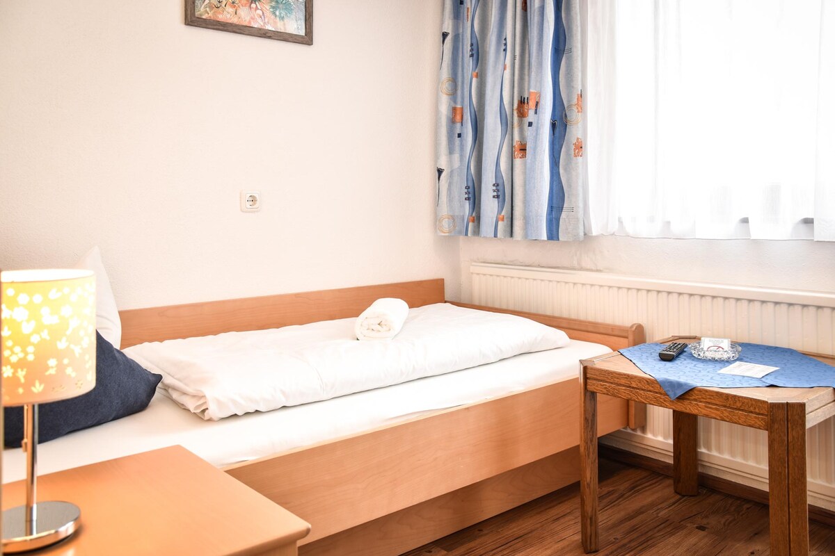 Gemütliches Einzelzimmer inkl. großem Frühstücksbüffet. Es besteht die Möglichkeit im hauseigenem Restaurant auf Vorbestellung Abends zu essen (Menüwahl). Unser Haus liegt am Waldrand ruhig aber doch zentral in Elbigenalp, dem Hauptort des Lechtales. Direkt vor der Tür finden Sie zahlreiche Wandermöglichkeiten und schöne Radwege. Im Winter kann man das weitläufige Langlaufgebiet nutzen oder in der Umgebung Skifahren (Warth am Arlberg ca 30 min, Jöchelspitze in Bach ca 10min mit dem Auto).