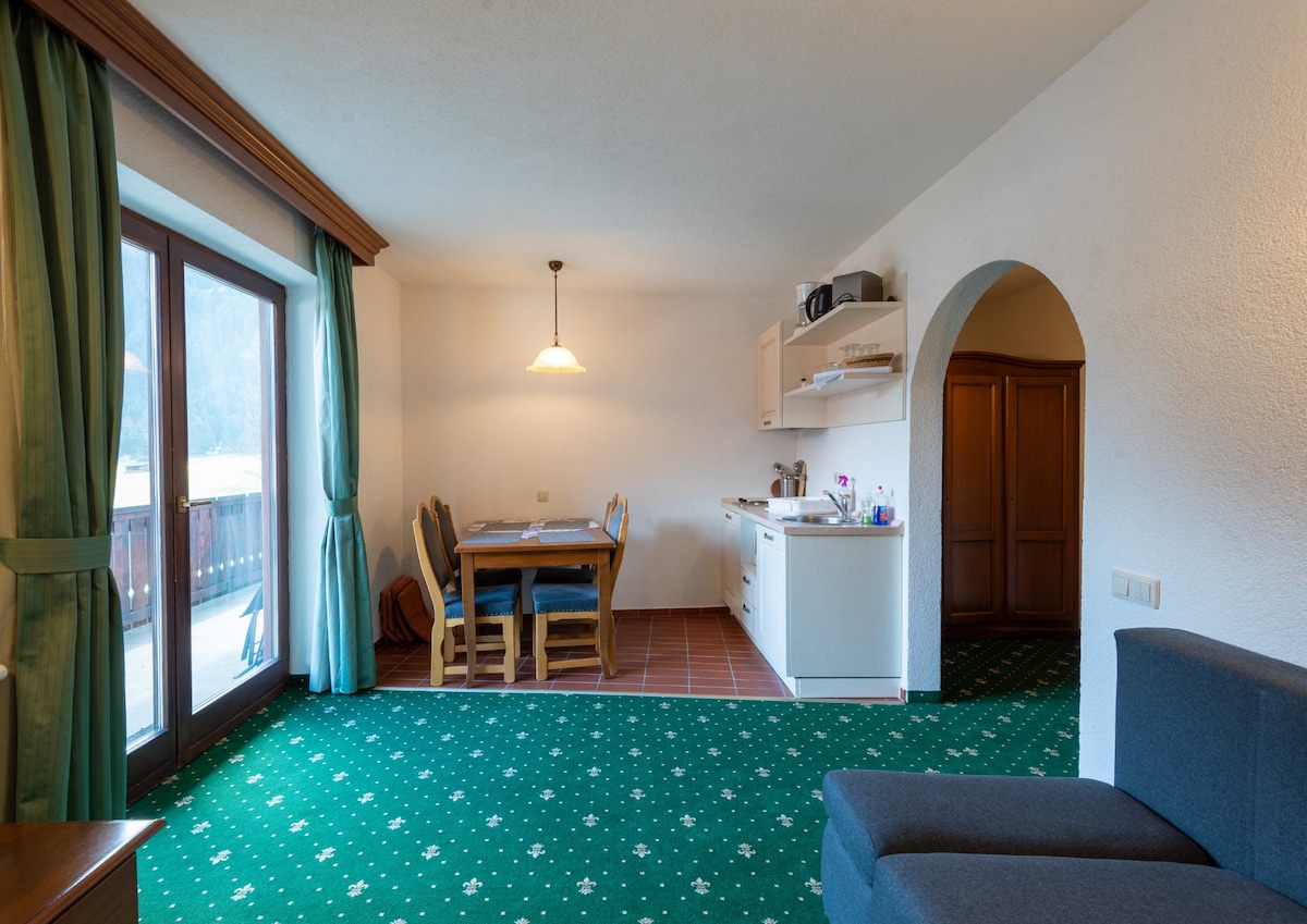 Appartement für 4 Personen,eigener Eingang,Wohnzimmer mit Schlafcouch für 2 Personen,eigenes Schlafzimmer 2 Personen Doppelbett, Dusche, WC, Doppelwaschbecken,Garderobe,kleines Gartenhaus, Kochnische mit Durchreiche zum Wohnzimmer mit Erker,eigener Parkplatz,Terrasse,Liegewiese,Spielplatz,Kinderbett für Babys kann ins Schlafzimmer der Eltern gestellt werden Ortstaxe pro Person pro Nacht € 3.-ist vor Ort in bar bei Ankunft zu bezahlen,Kinder unter 15 Jahre frei