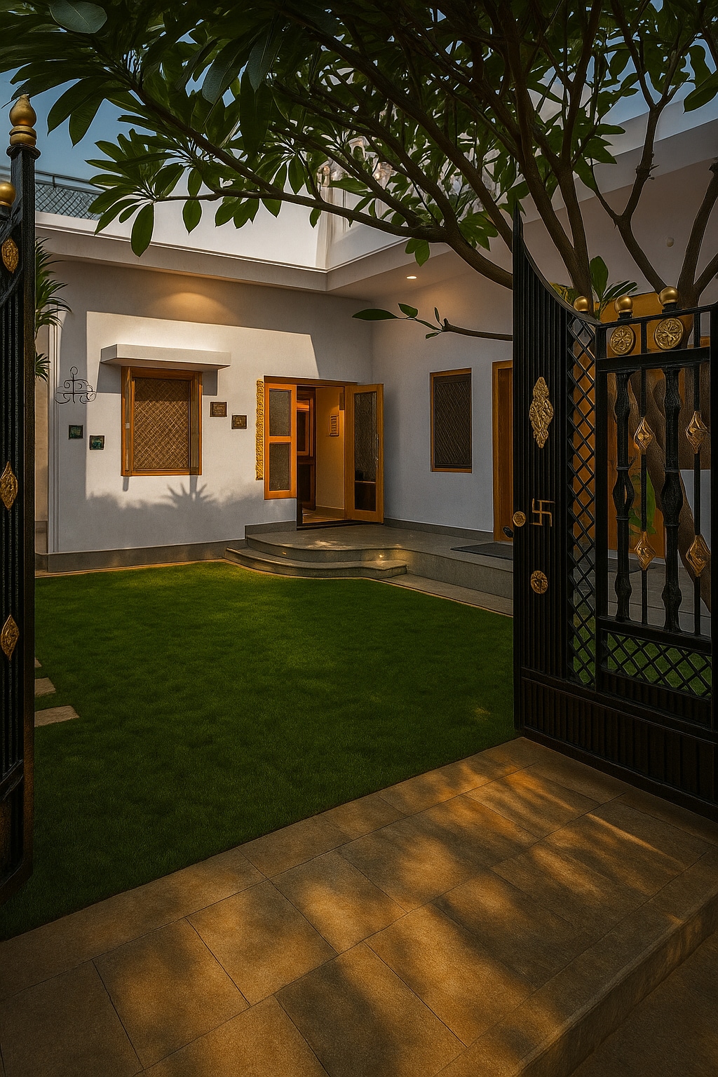 Colonel’s Villa, Abu Road — Nestled at the foothills of Mount Abu, this spacious 4-bedroom villa offers a peaceful retreat for families and friends. The villa follows a pure-vegetarian, alcohol-free policy, creating a calm and wholesome atmosphere ideal for Jain and vegetarian families. Enjoy quality time with loved ones amid serene surroundings, a private garden for kids to play with a fully equipped kitchen. Perfect for relaxation, laughter, and unforgettable evenings under the Abu sky.