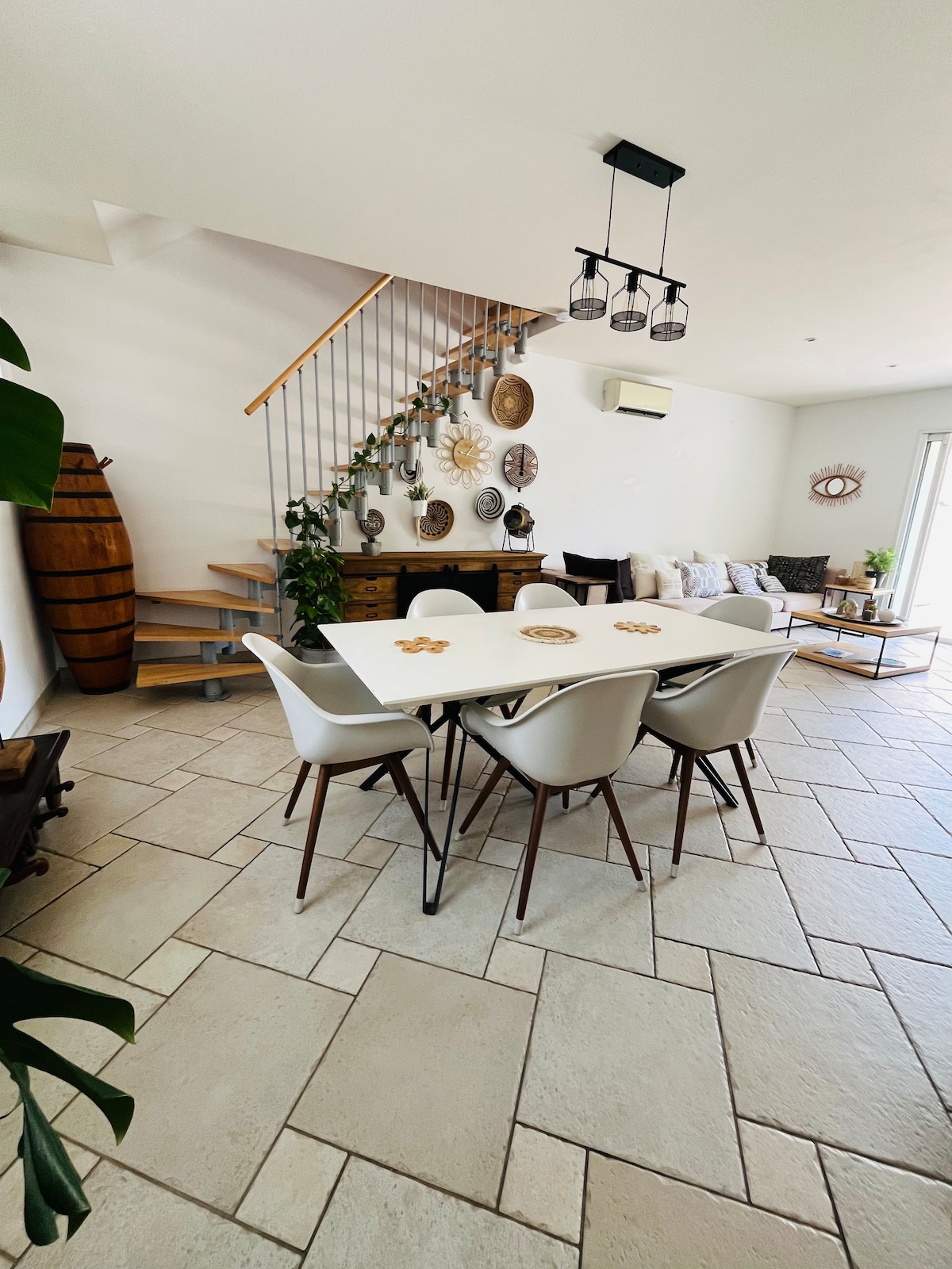 T2 tout équipé : - 1 Grand garage fermé - 1 Chambre avec grand lit - Salle de séjour avec coin cuisine (frigo, micro-ondes, cuisinière, four, machine à café, bouilloire) - Ustensiles et ingrédients cuisine de base (sel poivre, etc) - Salle de bain avec douche - Machine à laver - WC séparé - WIFI - Linge de lit et de toilette fourni Lit pliant, petite baignoire plastique, chaise haute, table à langer à disposition. Accès sur demande : Terrain de pétanque, salon de jardin, transats.