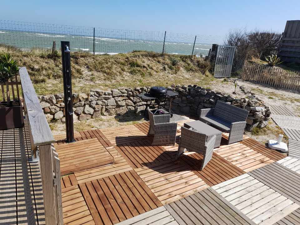 Sur la plage de Reville Jonville au rez-de-jardin de la maison des hôtes, cette conversion moderne est aménagée à un niveau élevé, avec chauffage au sol, un coin cuisine bien équipé avec bar/coin repas et salle de douche avec WC. Les fenêtres font face au sud et à l'ouest et donnent sur la terrasse. La région est idéale pour des séjours au calme en profitant de la vue, mais les activités ne manquent pas: sites du débarquement, marche, vélo, planche à voile, golf, etc. On parle GB, F, D.