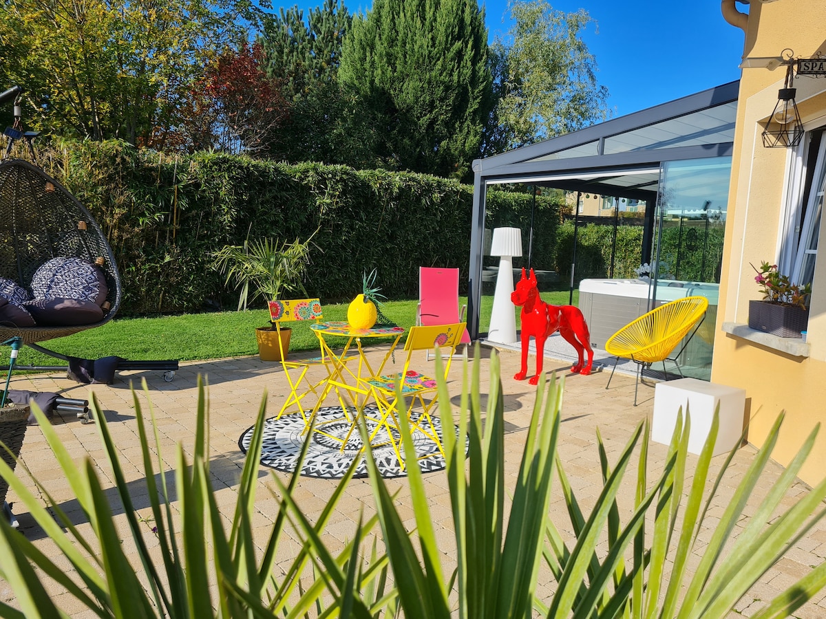 Si vous souhaitez vous détendre, vous reposer et faire une pause bien être, alors venez découvrir l Évasion en Ardennes !!! Notre logement est situé à Aiglemont, petit village calme, a 6 kms en voiture de Charleville-Mézières Vous pourrez profiter d un logement spacieux et très bien équipé.. En extérieur, vous pourrez disposer d une terrasse couverte et d une à ciel ouvert disposant d un jacuzzi privatif 5 places .. Venez bénéficier des bienfaits de ses massages…