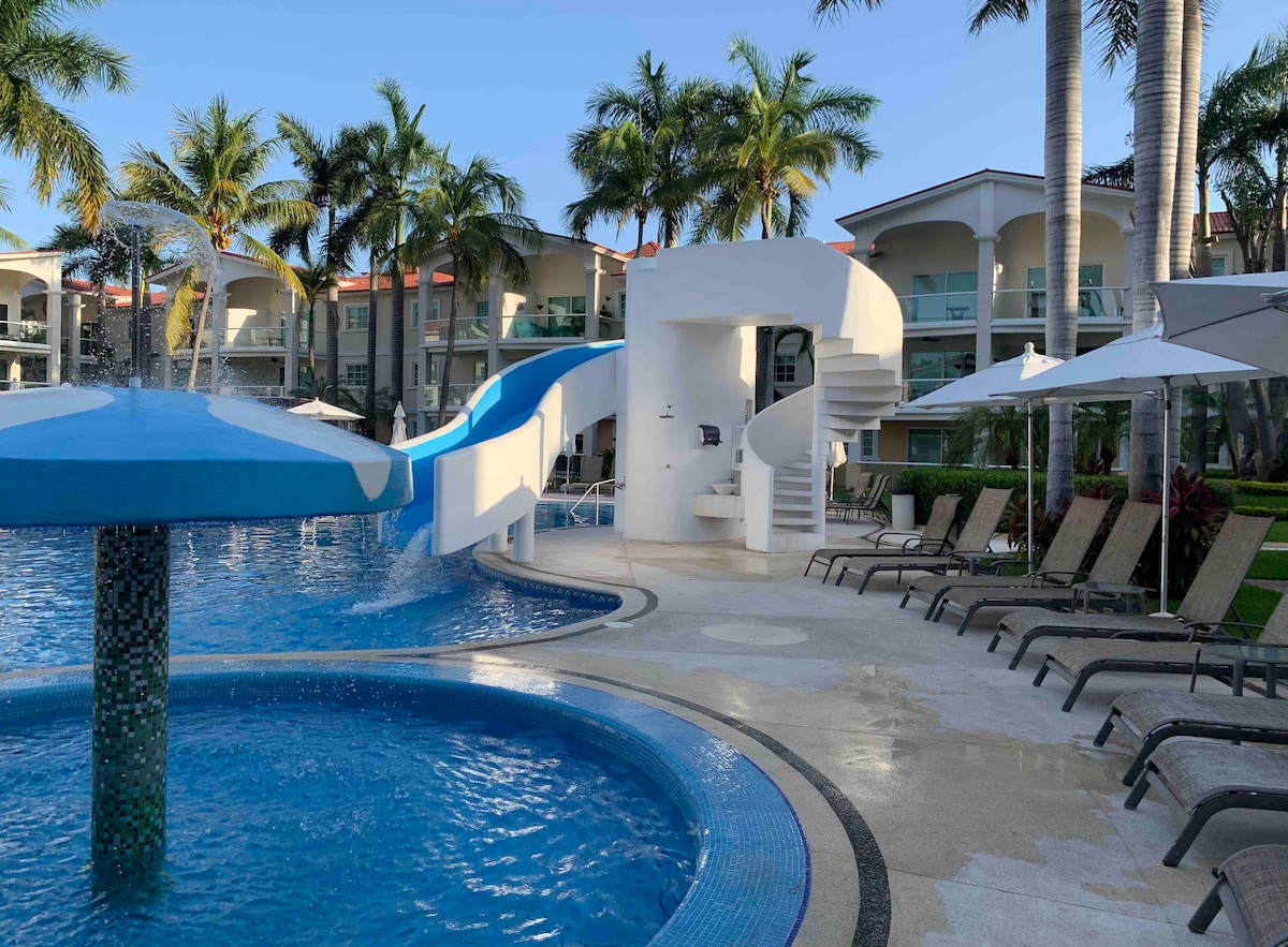 Depto equipado p/ 6 en condominio Mayan Lakes (Vidanta) IDEAL ABIERTO DE TENIS Alberca :camastros en agua, chapoteadero y áreas para asolearte, justo frente a la torre. Casa club sin costo: canchas de tenis, padel y pickle ball, gym, vapor, otra alberca, restaurante Con compra de brazaletes en recepción del hotel Mayan, tienen acceso a playa del Hotel, alberca del Mayan Palace y parque acuático infantil🌴☀️ . 🏡 2 recámaras 🛁 2 baños Condo c/ áreas verdes, lago (kayak), caminata