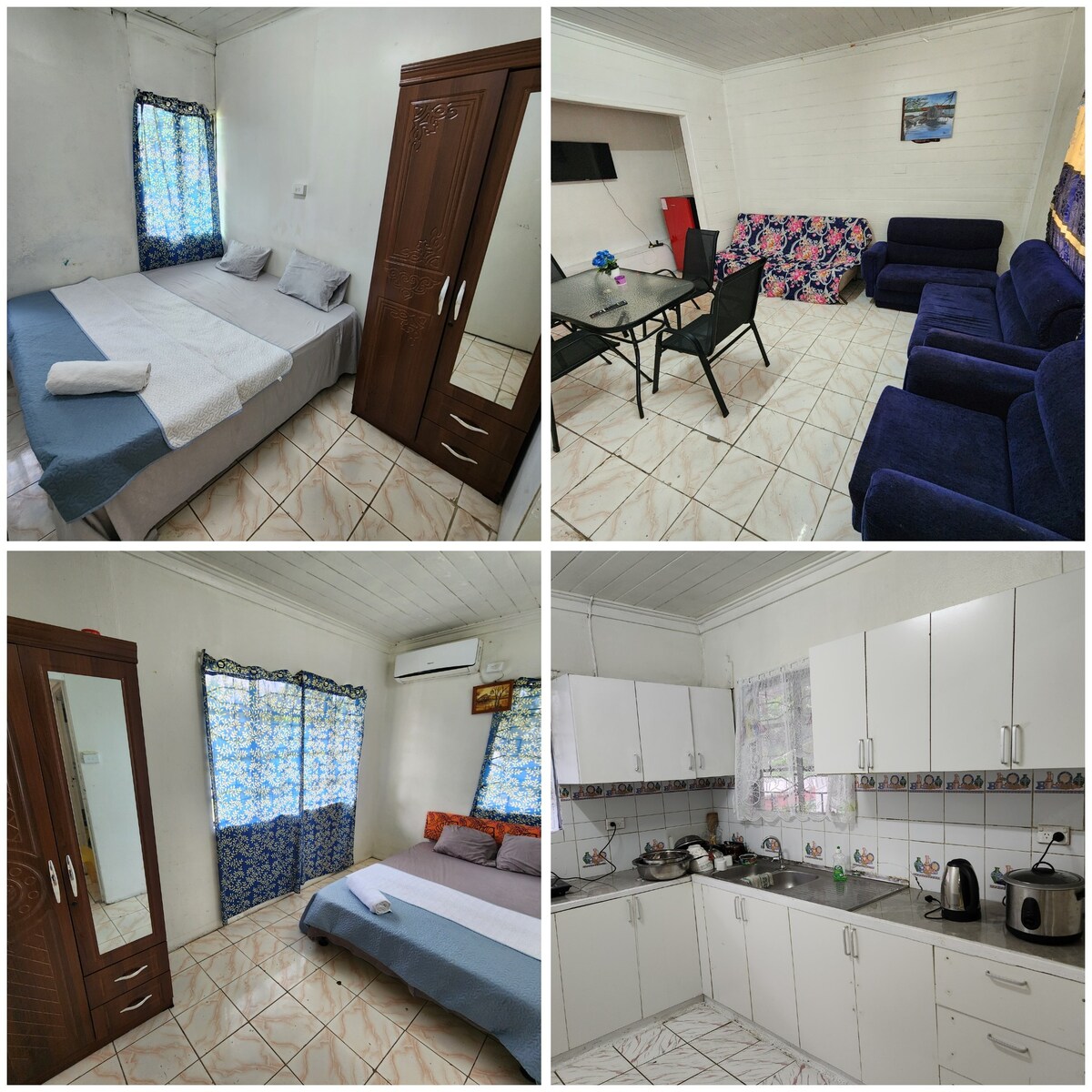 The split level accommodation is located at the end of a coming driveway, a quiet corner where you dot hear much of the busy streets. A great place for travelers coming into he country or even locals coming in from the Western Division :) We are located 4 miles outside of Suva’s CBD and would cost you roughly $1.05 to catch a bus into town.