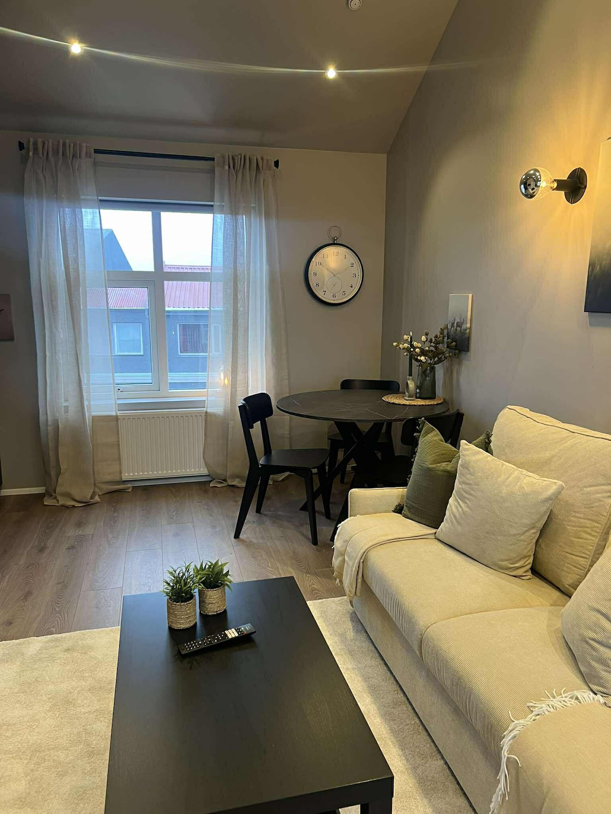 ✨ Acogedor estudio privado en el sótano de nuestra casa, cerca del centro de Keflavík. Perfecto para 2 personas, aunque puede alojar hasta 4 en espacio tipo monolocale. 🚗 Wi-Fi y aparcamiento gratuito en la entrada. A solo 8 min del aeropuerto, con supermercados, restaurantes, piscina y tienda 24 h a 1 min andando. 🌊 A 30 min de Blue Lagoon y 40 min de Reikiavik. Ideal para estancias cortas antes o después de tu vuelo. ¡Te esperamos! 💙