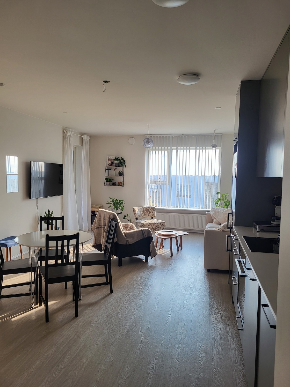 Beautiful studio apartment in downtown Keflavik, just minutes away from the International Airport. This 60 sqm studio is perfectly located in Keflavik and just a walking distance from restaurants, pubs and super markets. The studio is equipped with free Wi-Fi and a 75" flat screen TV with Netflix and cable TV.