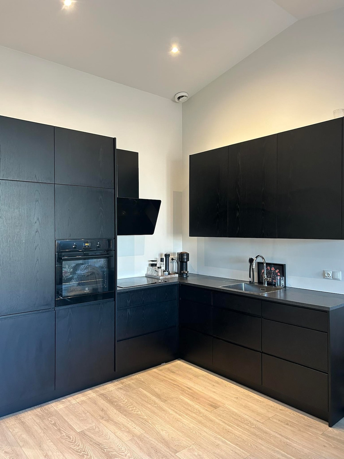 Unique vibes with a gym, sauna, and hot tub. 131 sqm / 1410 sqft with one large bedroom and two smaller bedrooms. One of the most unique aspects is a very large bathroom with a Sauna and a small Gym. In every area, there's smart lighting and a Sonos multi-room system. Walking around the back leads to the hot tub and bbq, both of which come with the apartment.