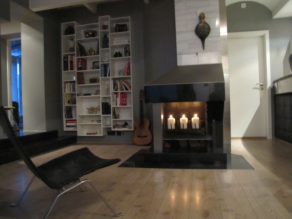 位于市中心的舒适公寓。私人停车场