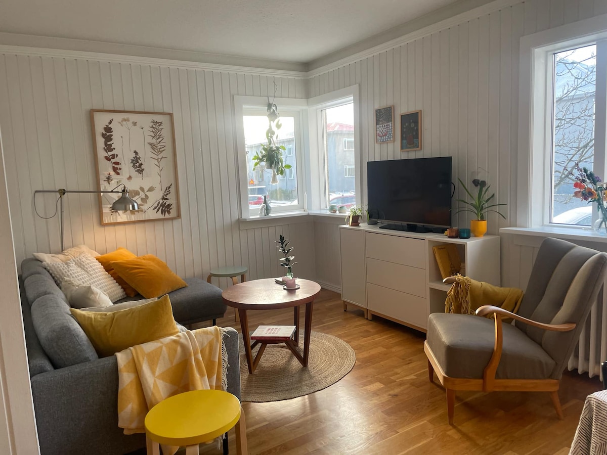 Welcome to our house! On the ground floor of our house, we've renovated a small private studio apartment, approximately 25sq.m., perfect for solo or duo travelers. Located in a quiet and friendly neighborhood, it's only a short 5-minute drive to Reykjavik city center and only a 2-minute walk to the next bus stop. With amenities like free wifi, a washing machine, a small kitchen, and a Nespresso coffee maker, you'll experience Iceland while staying like a local in a central suburban area.