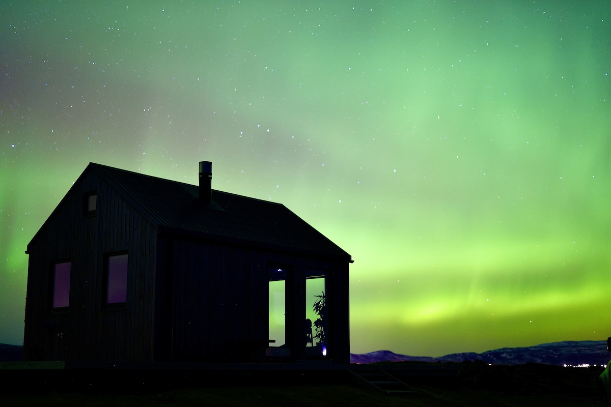 Wake up to stunning views of Volcano Mountains and the Ölfusá River in this private, cozy cabin, just 35 minutes from Reykjavik. Surrounded by 5.000 year old lava and moss, its 180° glass windows bring you closer to nature. Explore nearby gems like Reykjadalur Hot Spring, the Golden Circle, black sand beaches, and Route1 is around the corner. Perfect for couples or adventurers, the cabin features a main-floor bedroom (90cm) and a sleeping loft (180cm). Pool and supermarket are 13 minutes away.