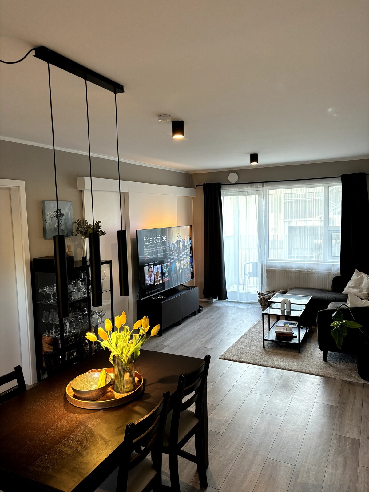Spacious flat in a two-apartment house Close to nature and close to the downtown center A newly renovated, fully equipped apartment (80 m2) with Two bedrooms (180X200 beds in both rooms) and A sleeping couch in the living room (for two persons). All the comfort you need on your holiday dishwasher, washing machine, ready-to-use kitchen, Nespresso coffee machine, TV, Apple TV, Internet (wifi) Beautiful garden, with BBQ and outdoor seating area. Private parking in front of the house