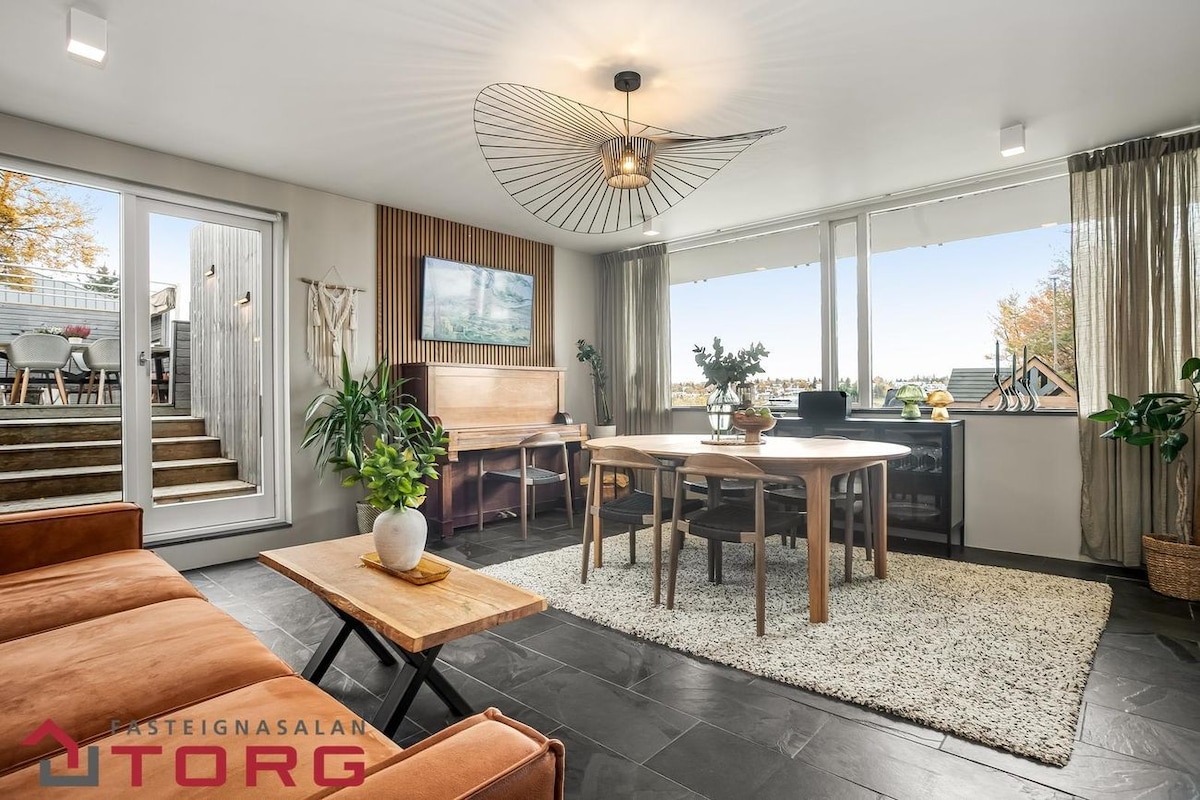 Our gorgeous, modern apartment is situated next to the shoreline and has a unique panoramic view of the sea, mountains and Reykjavik city. The apartment is beautifully designed and well-equipped. The apartment is conveniently located for visitors to Reykjavik and farther afield. The apartment comfortably sleeps 5 people. 24H Check In. Free parking.