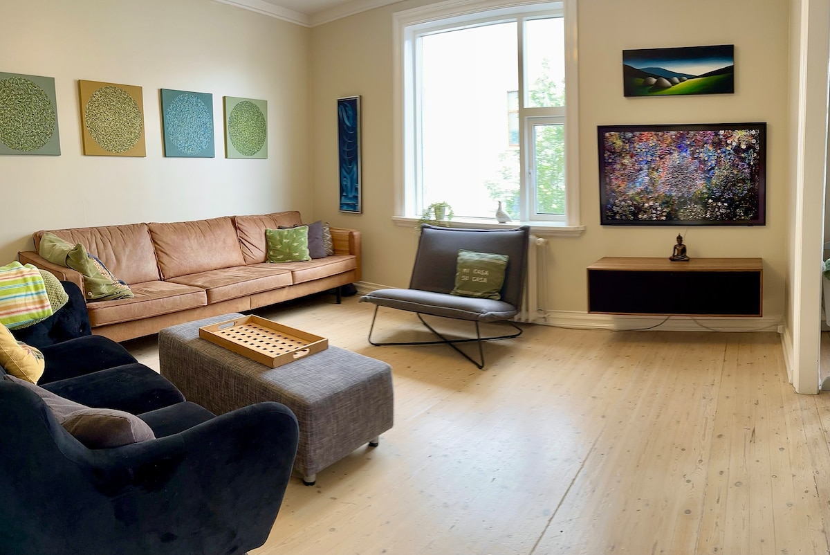 This Kims Apartment is located on the Best part of "Laugavegur", Reykjavik's main downtown shopping street. It has a SleepWell memory foam King-size bed and full curtains to ensure you get the best night's sleep. The apartment is on the second floor and the bedroom is well protected from the buzz of downtown. The living room invites you to listen to records on the Bluetooth Yamaha Sound-Theater and watch shows or movies on the Big 65" TV with Netflix, Disney+, and Prime included. Enjoy!!