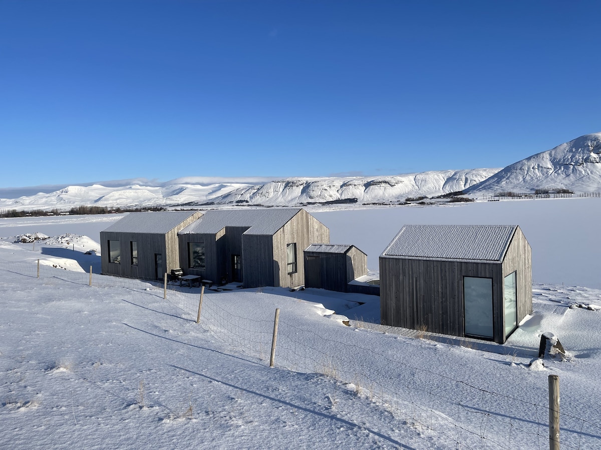 明亮的小木屋,靠近雷克雅未克,带热水浴缸