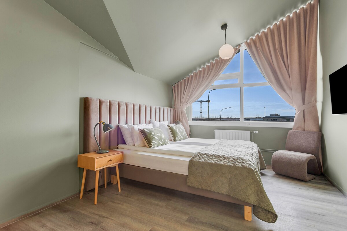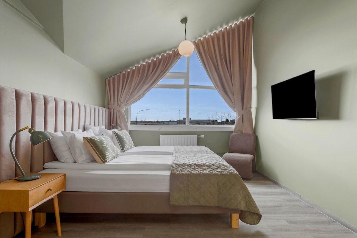 Our cozy and comfortable hotel is ideally located in Reykjavík, just a short walk or drive from Kringlan Shopping Centre and Laugardalur — the city’s main recreational area featuring the Sports and Exhibition Centre, Botanical Garden, Family Park, and outdoor ice-skating rink. The surrounding neighborhood offers a variety of shops and restaurants, and Reykjavík city center is just 2.5 km away, easily accessible by foot, bus, or car.