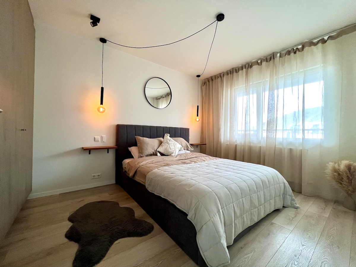 位于市中心的舒适公寓。私人停车场