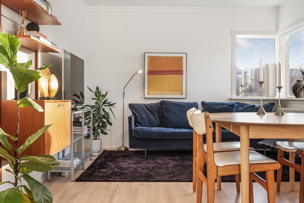 Stylish and comfortable Penthouse apartment right in the center of Reykjavik. Just 2 blocks off the main street in a very quiet neighbourhood. The main shopping streets, restaurants, bars and museums all within 5-10 minutes walking distance. Equipped with everything you need for a short or medium-term stay. Very close to tour bus stops #6 and #14 (see busstop dot is).