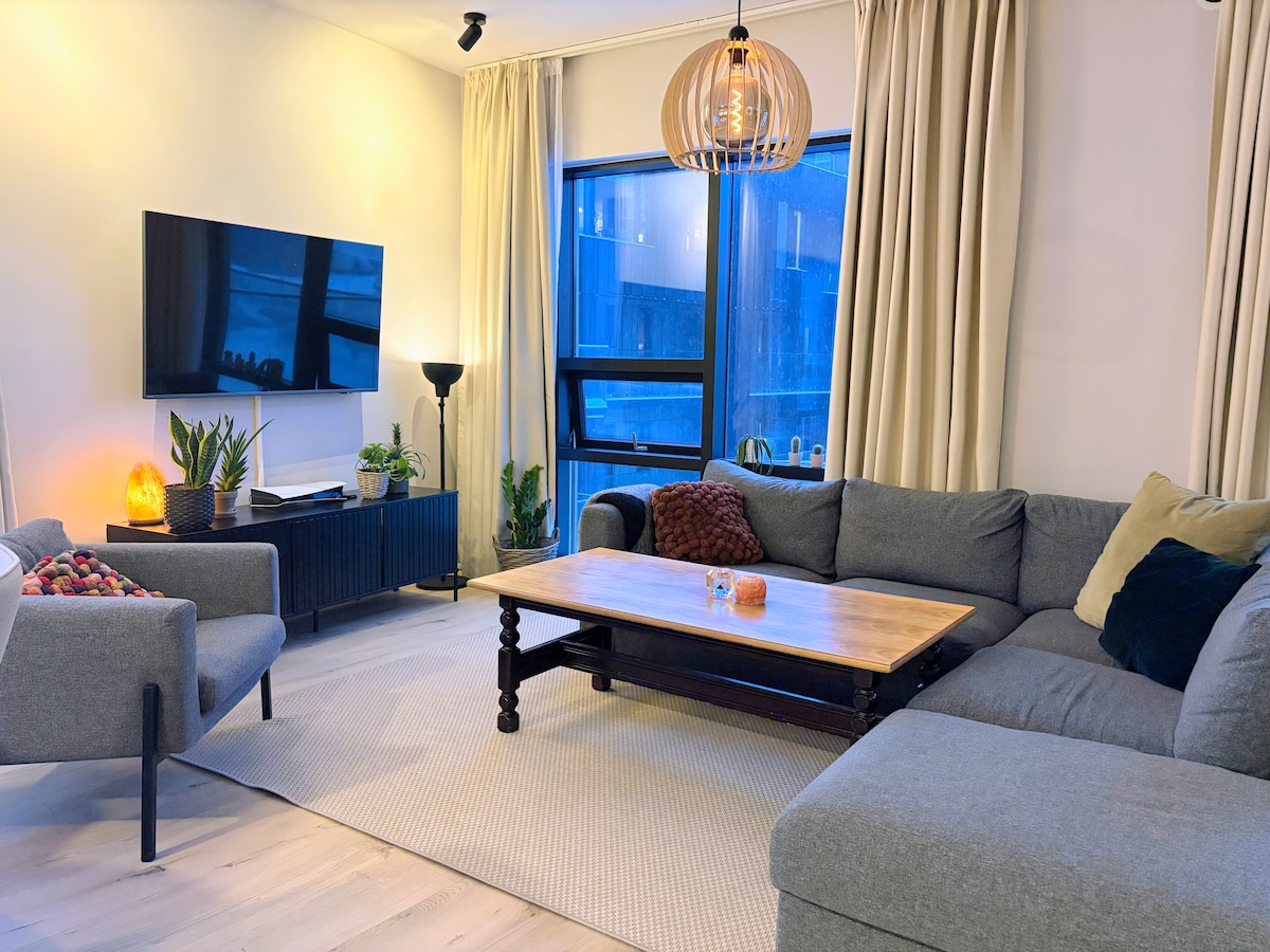 Newly designed and fashionable apartment situated alongside the lavish Sky Lagoon and the ocean. 1 bedroom, living room, kitchen, bathroom and a private balcony. Free parking. The apartment is located within walking distance to sky lagoon, cozy bakery, local swimming pool and a fine dining restaurant. Guests can also enjoy nice walking paths by the ocean and harbour. Downtown Reykjavik is only 8-10 minutes away by car.