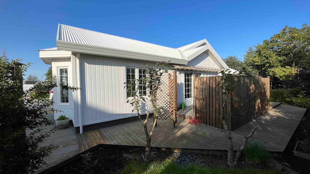 Nature Reserve: A cabin for an adventurer, in a sanctuary area in front of the ocean in the heart of Reykjavik. Unique to look for exciting experiences. Wi-Fi, TV, matrimonial bed, double sofa. Total 39 square meters (maximum 4 people),laptop ready, spacious bathroom with heated floor, jacuzzi, large shower, washing machine, kitchen. All with extraordinary lighting. A walkway along the beach to the old city. Location to look the Northern lights *aurora borealis* - English, Swedish and Spanish