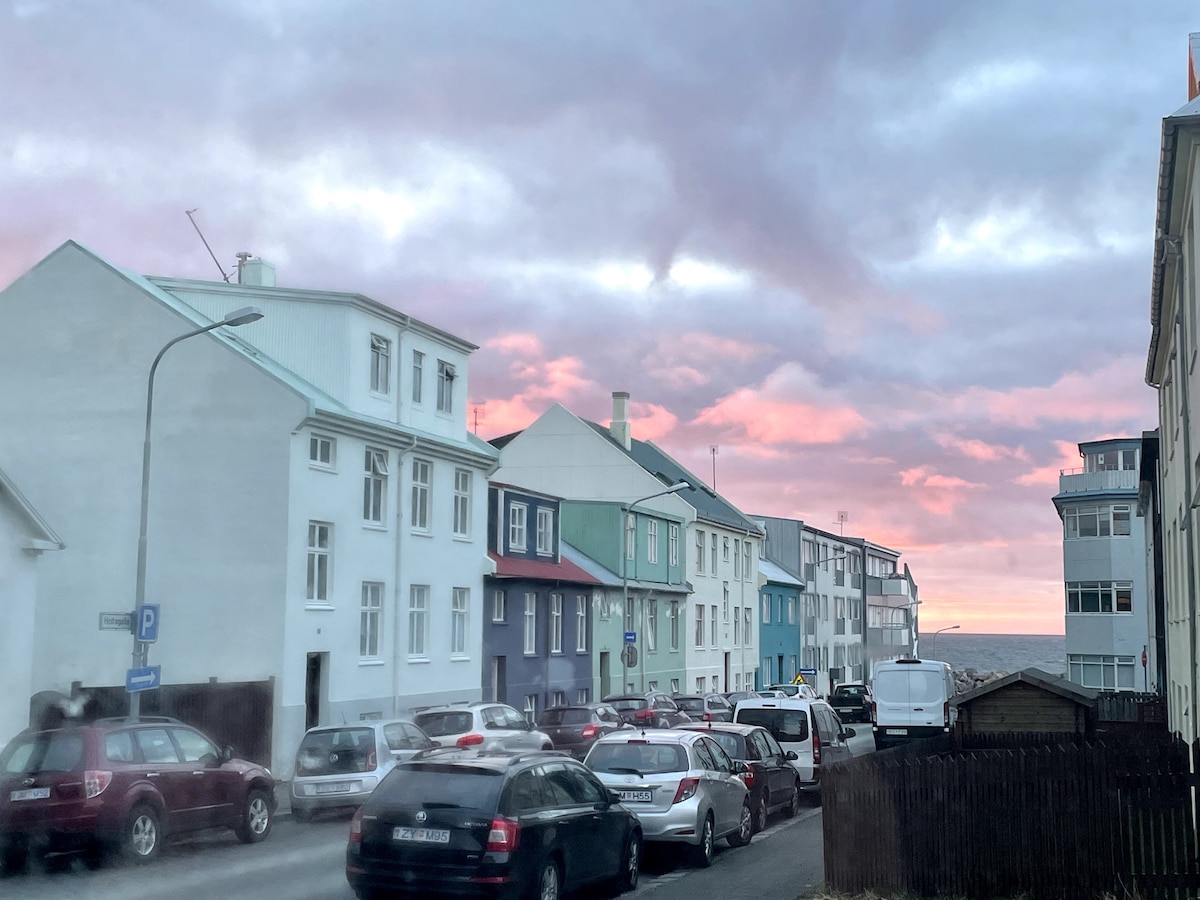Discover our charming 1940's apartment on Reykjavik's lively Laugarvegur street. Centrally located near Harpa, Hallgrímskirkja, and Tjörnin lake, it's a perfect base to explore. Just 7 mins to the old swimming pool with hot pots and sauna, and surrounded by 24/7 stores, cafes, and restaurants. Reykjavik Art Museum is a short walk away, and the BSI bus main station is just 13 mins on foot. Welcome to your ideal Reykjavik getaway!
