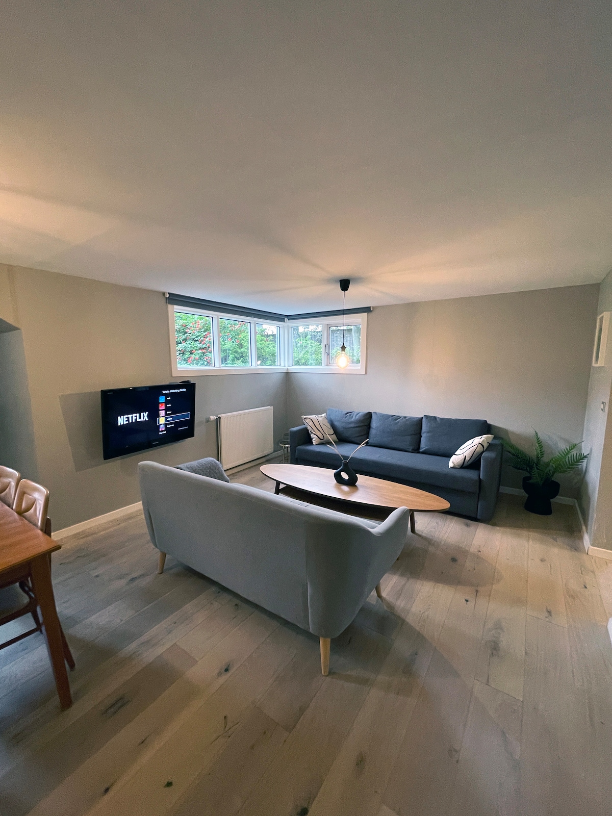 Escape to our 3-bedroom local family apartment in Garðabær, Iceland. Next to the main bus stop and just 30 minutes' drive from the Airport. Located on the lower level of a two-story building, it offers a peaceful retreat with a beautiful big garden. - 30 minute drive from KEF Airport - 24/7 supermarket within a 10-minute walk. - Thermal water swimming pool and gym are just two minutes away. - Direct bus to Reykjavík city center An ideal base to explore Iceland's natural wonders.