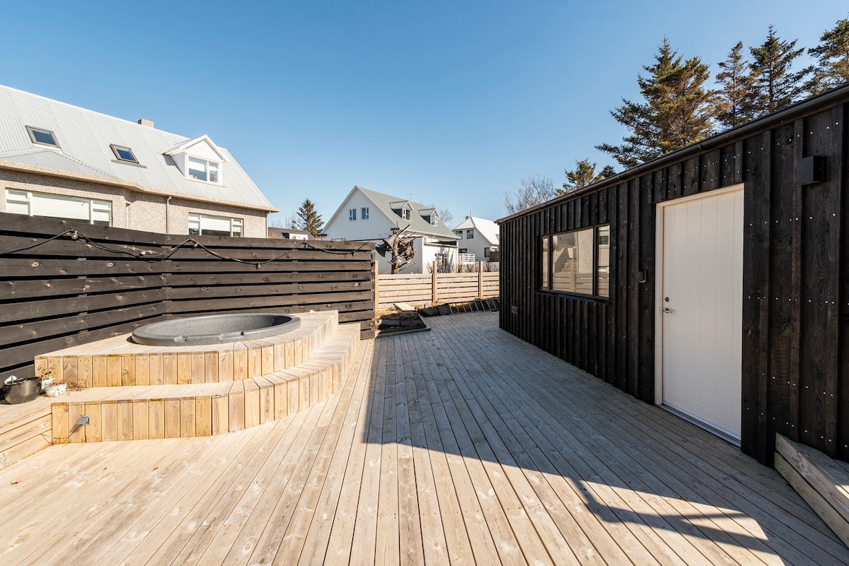 明亮的小木屋,靠近雷克雅未克,带热水浴缸