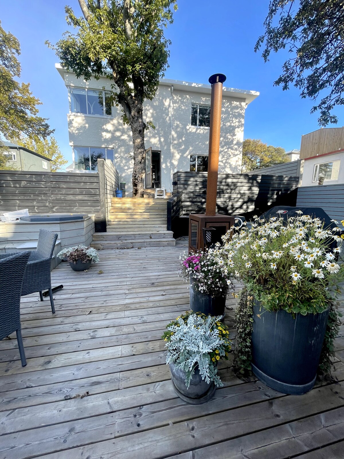 Welcome to this beautiful house located conveniently in a family friendly and quiet neighbourhood This house offers accommodation for 11 people and has everything you will need.. It also offers a very spacious garden and wooden deck with a hot tub and sauna If you are wondering what to do near Mosfellsbær, there are several walking trails, playground for the kids and short drive to the mountains Úlfarsfell and Esja The house is beautifully decorated and stylish, we offer towels and bed linen.