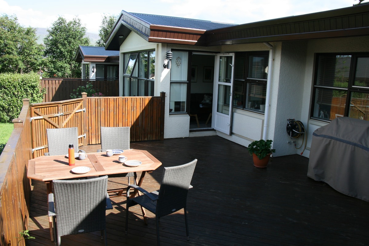 Our home is loaded with all the equipment and amenities you can think of. There is a beautiful deck and garden in the back as well as a terrace on the second floor with views over the Elliðarár-valley. Our home was fully renovated 18 months ago both inside and outside, it´s therefore like a new house. It is located in an wonderful family neighborhood which is next to a valley with walking paths and a salmon river and at the same time it is only 10 minutes from down town.