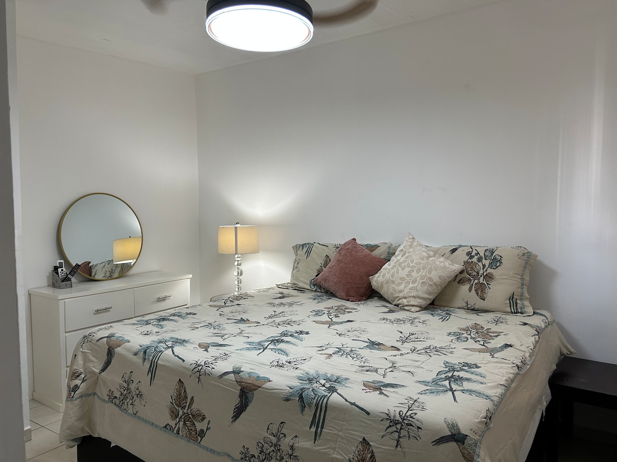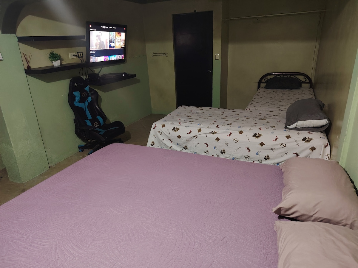 Relájate en esta casa completa ubicada frente al parque de una colonia tranquila. Ideal para dos personas. Cuenta con 1 habitación, 1 cama cómoda, 1.5 baños, sala, cocina equipada y área de trabajo, con aire acondicionado en toda la casa. Estacionamiento privado y techado, con área de asador. ¡Las mascotas son bienvenidas! Tiendas de conveniencia, farmacias y restaurantes se encuentran a menos de 5 minutos. ¡Te esperamos con un espacio limpio, cómodo y en una excelente ubicación!