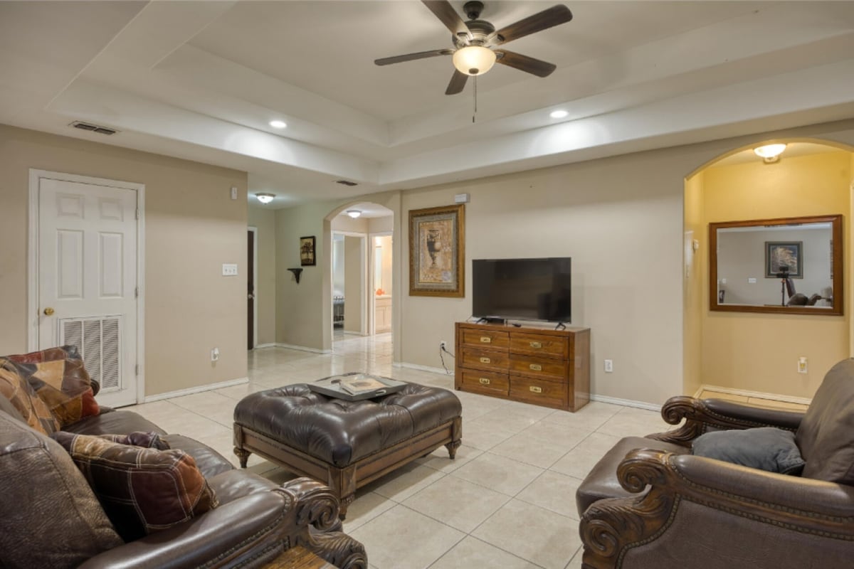 Welcome to your private retreat! This fully renovated, single-story home features two spacious bedrooms, and a large yard, perfect for outdoor relaxation. The entire house is yours to enjoy, offering all the comforts of home, including a fully equipped kitchen and a cozy living area. Located just 5 minutes from the Hidalgo Bridge, it's a convenient spot for both relaxation and exploration. Whether you're here for a getaway or shopping, this home is the perfect blend of comfort and convenience