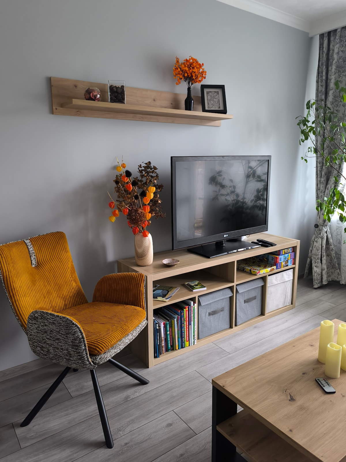 This cosy flat will make you feel right at home. You don’t need to worry about anything - there are pots and pans in the kitchen, all electrical appliances, you can easily wash and iron your clothes, and rest in a King size bed after a busy day, with a large flat screen TV in each room. The location is perfect, located in the city centre, on the ground floor with free parking right outside. The park is just 2 minutes away, and from there you can explore our cute little town.