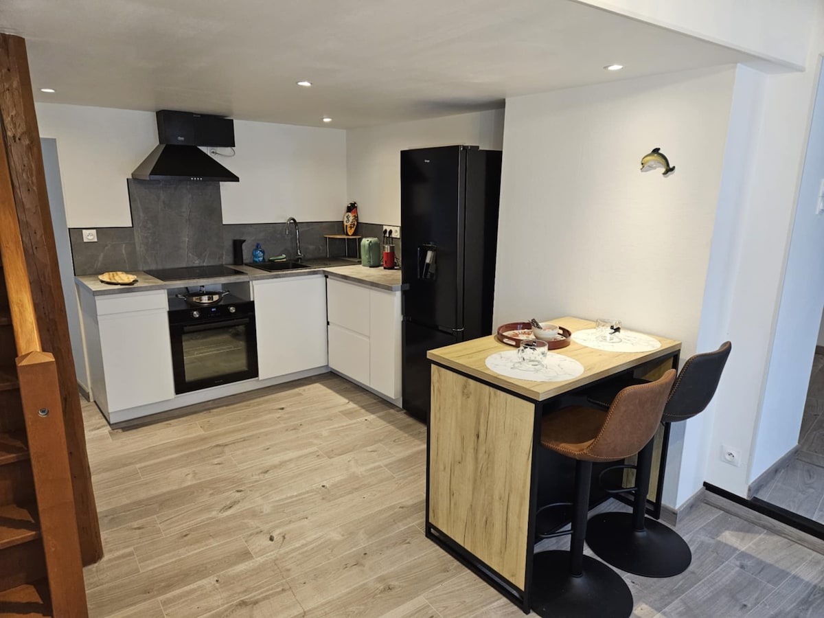 T2 cosy 35m2, rue stationnement gratuit. • 1 Pièce de vie avec comptoir dînatoire, cuisine équipée (lave-vaisselle,four, micro-ondes, plaques vitro, frigo/congel, Nespresso, petite epicerie, café, thé…), canapé, télé TNT et wifi. • 1 Chambre: Lit queen size 160x200 avec une douche attenante (Bac 82x78) • 1 WC séparé Cheminée électrique Linge de lit, serviettes, gel douche fournis. Nous partageons avec vous notre jardin avec boulodrome et petit chalet équipé d'une cuisine d’été. Lingerie