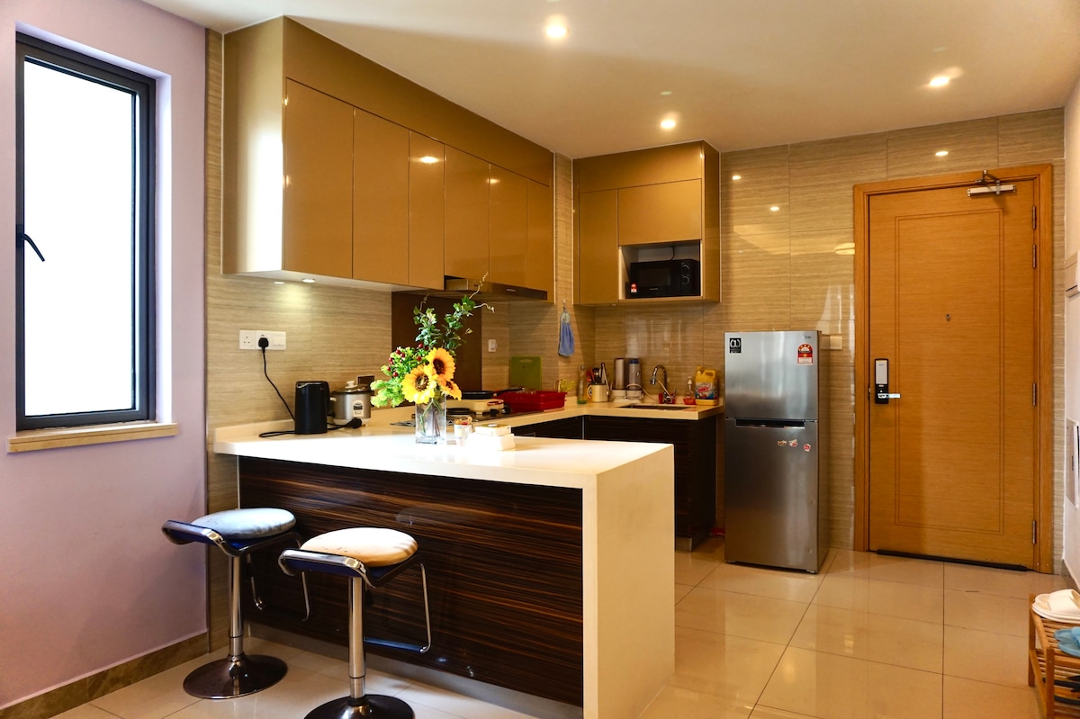 1Bedroom + Bathroom + Living room & Kitchen 1 KINGSIZE BED SHEET + Carpark not provide. (Maximum can stay 4person have extra 2pcs thin mattresses) Due to the safety issue, we NOT allowed to cook, but have prepared mini electric pot and Microwave for guest to light cook eg. instant noodles, soup, salad etc. Stylish 1-bedroom suite closest to the SG-MY checkpoint with 7 min. Perfect for couples / solo travelers / Family for trips, work stays, or city adventures.