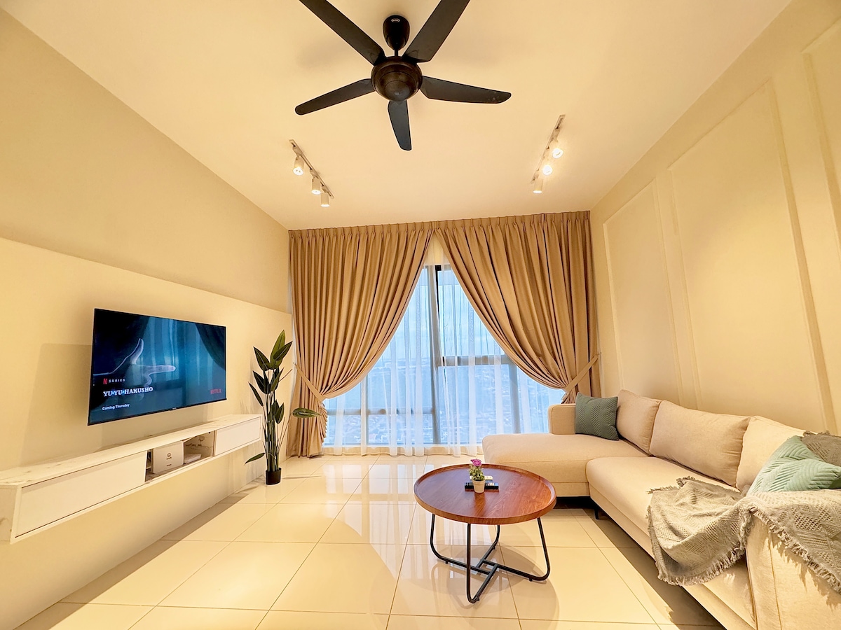 Brand New Design with Midnight Lux (Sea View) R&F Mall is linked with our homestay just downstairs 1min walking distance Luxury Style with Super Seaview is Our homestay is very spacious with 2bedroom and 2bathroom. Can be 6-8pax to stay, Suitable for family trip or working outstation .Once you come you will definitely love our homestay~ The Homestay Space Provide : 300 Mbps Hi-Speed Internet TV with Netflix and Youtube Towels Shampoo and Body Gel Air-conditioning