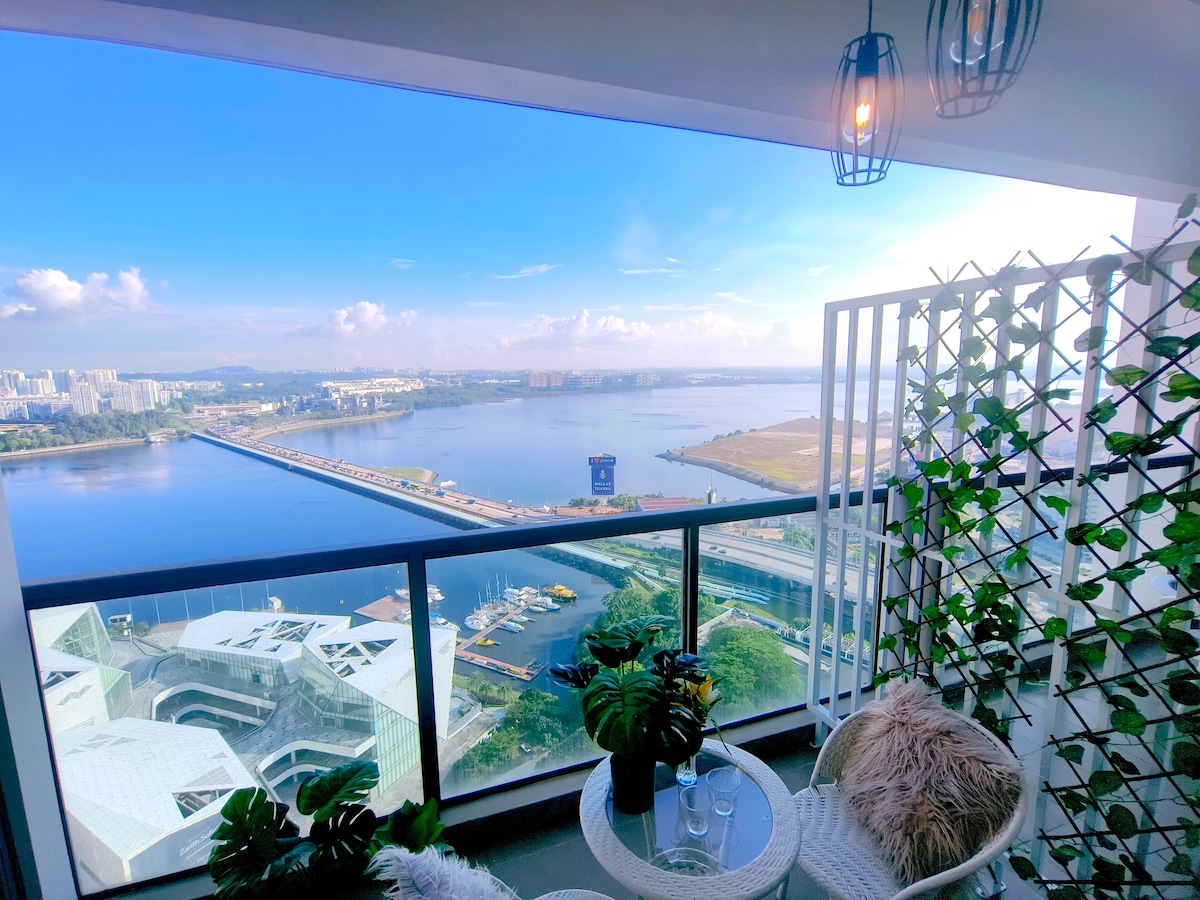 This unique apt in R&F princess cove has a style all its own. It's beside Singapore - Johor Bahru Custom. There's a link bridge for pedestrians linking Johor City center and custom to Singapore. Very suitable for anyone visiting Singapore and Malaysia. The condo is equipped with pool, gym, and ping pong table. *Please indicate the right number of guests when you book so we can prepare the best stay for you. You might be allocated the different apartment in R&F with seaview