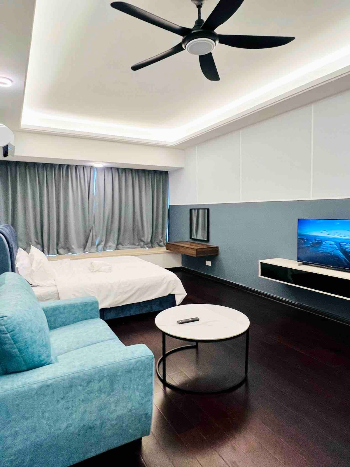 Private Luxury Suite | Walk to KSL Mall • Walking distance to KSL Mall • MUJI-inspired minimalist design • Private Jacuzzi for relaxation • Immersive cinema with surround sound • King-size bed with 12-inch premium mattress • Plush high-end sofa Designed for comfort, privacy, and quiet luxury. Ideal for couples, special occasions, or guests seeking a refined and uninterrupted stay in the heart of Johor Bahru.