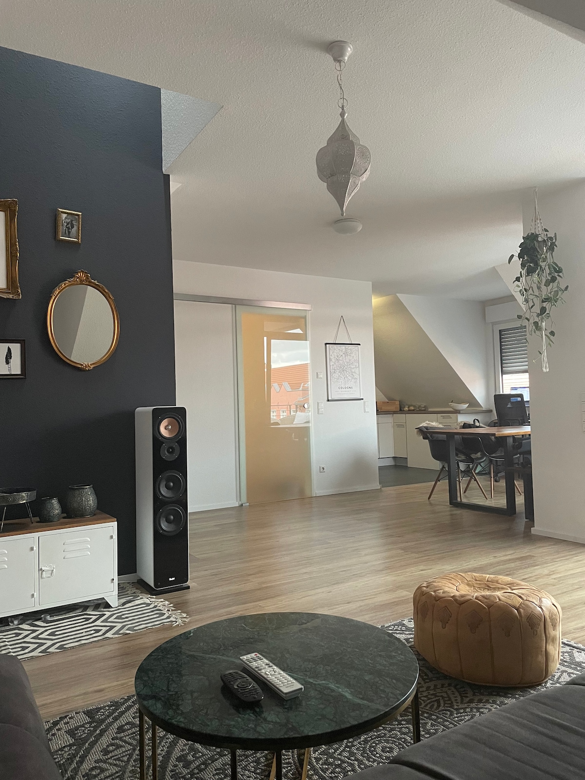 This spacious, bright duplex apartment offers everything to make you feel at home. Fully equipped with premium-quality, modern designer furniture and state of the art technical devices this secluded home is located in the sophisticated area of Düsseldorf Benrath. It's proximity to public transportation makes it easy to get to the Fair Trade/MESSE, airport, inner city of Düsseldorf and to Cologne. The river Rhine and Benrath castle, restaurants & grocery stores are just in walking distance.