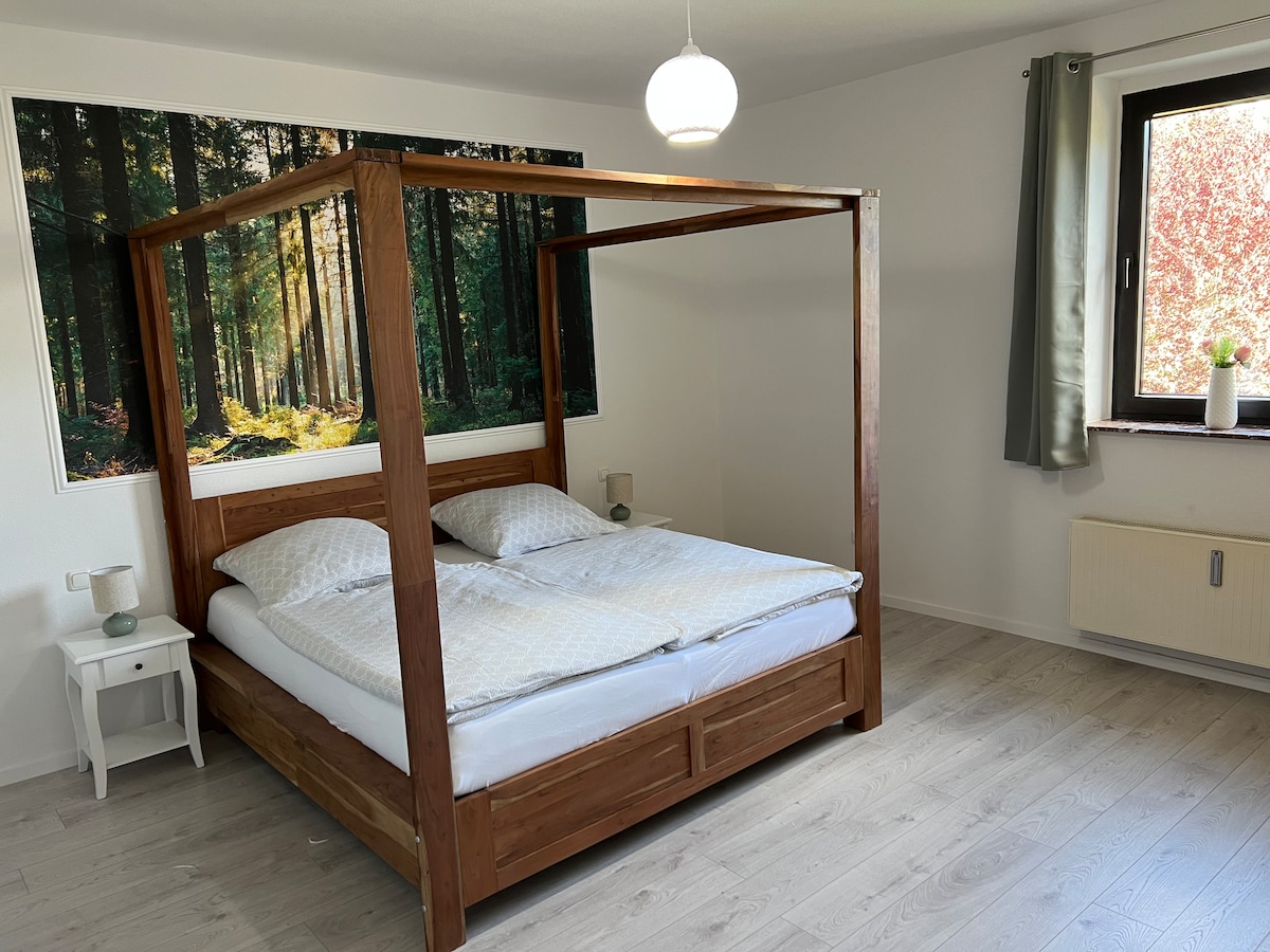 Diese ca. 100 qm große Wohnung mit besonderem Flair bietet Platz, Komfort und eine originelle Architektur: Gelegen im Anbau des Haupthauses (mit eigenem Eingang) wurde ein früheres Schwimmbad in 2018 mit viel Liebe zum Detail in eine helle, geräumige Wohnung umgewandelt, die Platz für vier Personen bietet. Sie ist ausgestattet mit Whirlpoolwanne und Sauna für Wellness und Entspannung und liegt direkt an Feld und Wald und am Naturpark Eifel mit 1000 Ausflugsmöglichkeiten (Natur/Euregio/Städte).